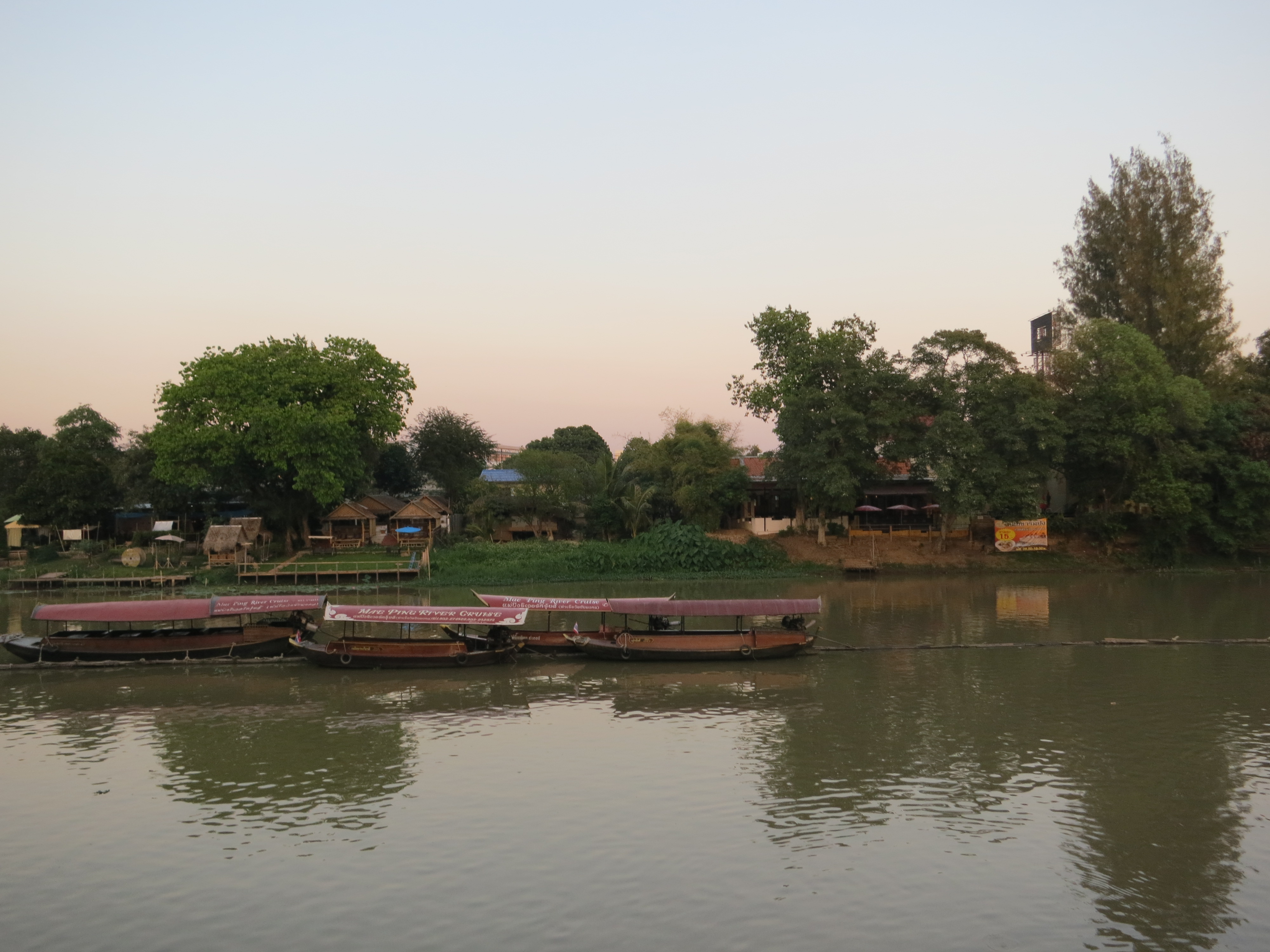 We visited about a dozen temples during the course of the afternoon; apparently there are over 300 in Chiang Mai. We certainly won’t be able to visit them all, but we saw some of the major ones. One of the temples we visited was Wat Chiang Man, the oldest temple in Chiang Mai. We also visited Wat Chedi Luang, which is where the Emerald Buddha that we saw in the Royal Palace used to be located. We also visited Wat Phra Sing. We went on a bit south of the old town to find Wat Chai Mongkhon, then had a brief break as we sat on a bench outside the temple, looking out over the Ping river. We walked back to the hotel by way of the Chiang Mai night market, which was just being set up (the sun went down as we arriving at Wat Chai Mongkhon, and our walk back to the hotel took place in the early night). After arriving back at our hotel we played a couple of hands of crib, both of which Todd won, before we set out to find dinner. This turned out to be a bit more challenging than we expected; by 9 PM it seemed that most major restaurants had already closed. After about 20 minutes of walking (and seriously contemplating just getting snacks at 7-Eleven) we returned to the restaurant we had lunch at - the first time we repeated a restaurant during the trip!Random Wat in Chiang Mai