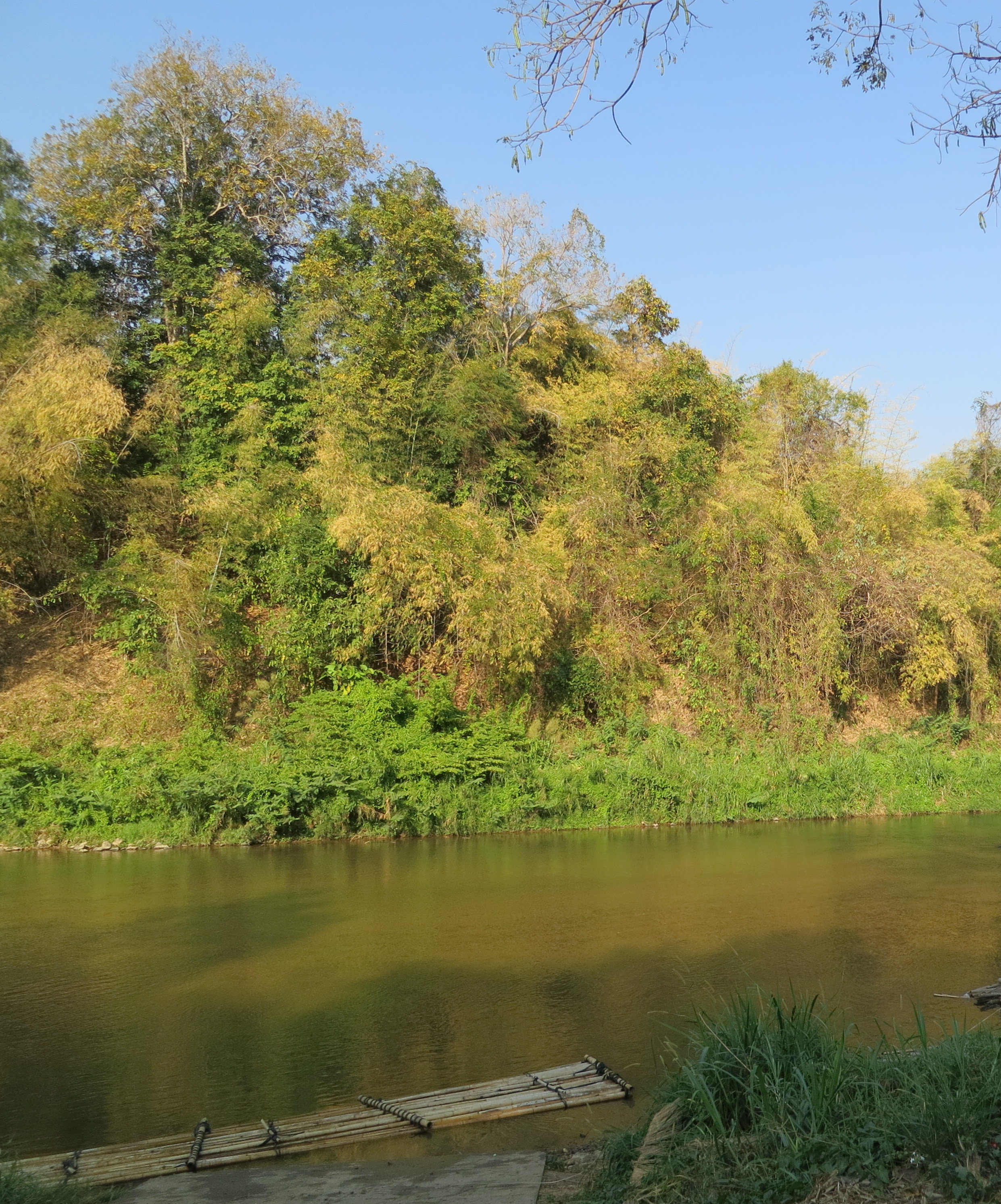 The final part of the tour was some white water rafting, followed by bamboo rafting down a river. The white water rafting part was a lot of fun, while the bamboo rafting was only okay. The bamboo raft didn’t float very well, so we got pretty wet as we floated down the river. At one point during the the white water portion of the trip we saw an elephant rummaging through the forest on the bank of the river. It wasn’t easy to see at first, and given that we were only able to see the elephant’s tail at first Todd thought that there was a snake fighting something in the forest! Luckily it was just an elephant foraging for food. It was pretty impressive to see an elephant like that in the wild.The river we rafted on. The raft is visible at the bottom.