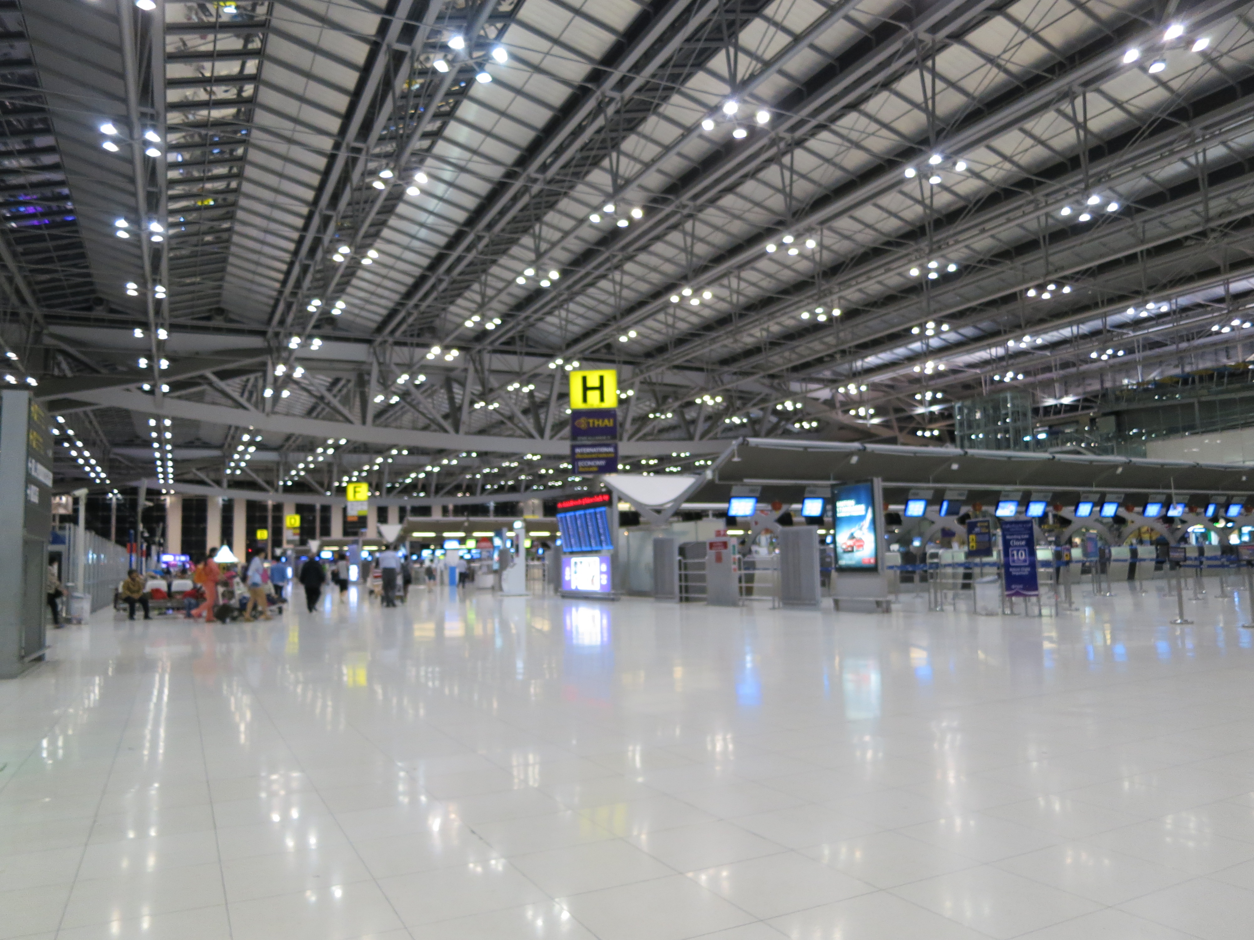 We decided against getting a hotel, so Todd and I spent the better part of the evening and early next morning chilling near the ANA baggage column at BKK, because we were unable to check in for our flight until 4 hours prior to flying. We planned on staying up until we got onto our first flight; we were hopeful that it would make it easier to get back onto EST that way.BKK in the wee hours of the morning