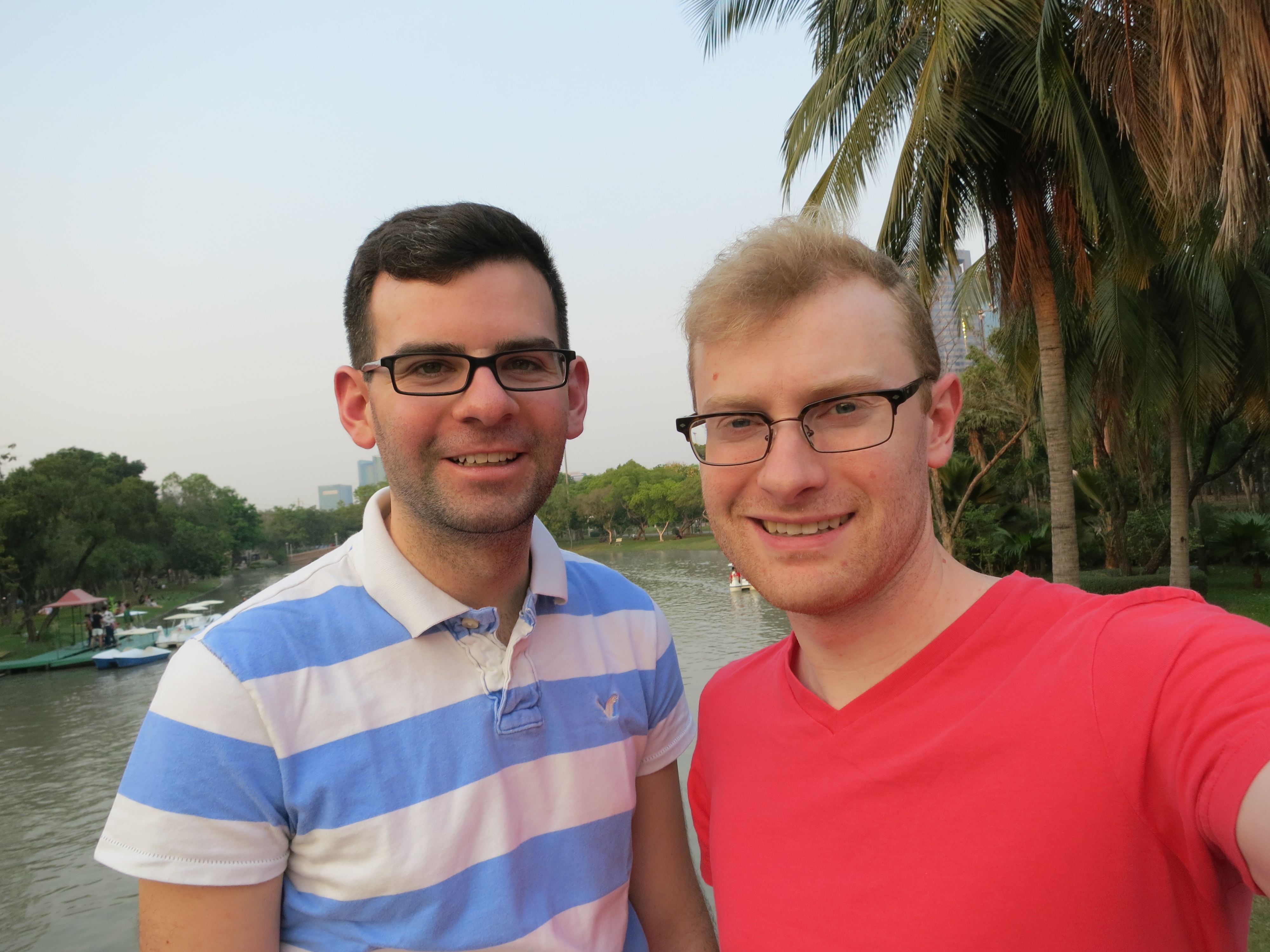 After a few hours the market got a bit overwhelming so we walked outside the market to the nearby Chatuchak Park and looked out over a small lake which had paddle swans in it.Todd & I in Chatuchak Park