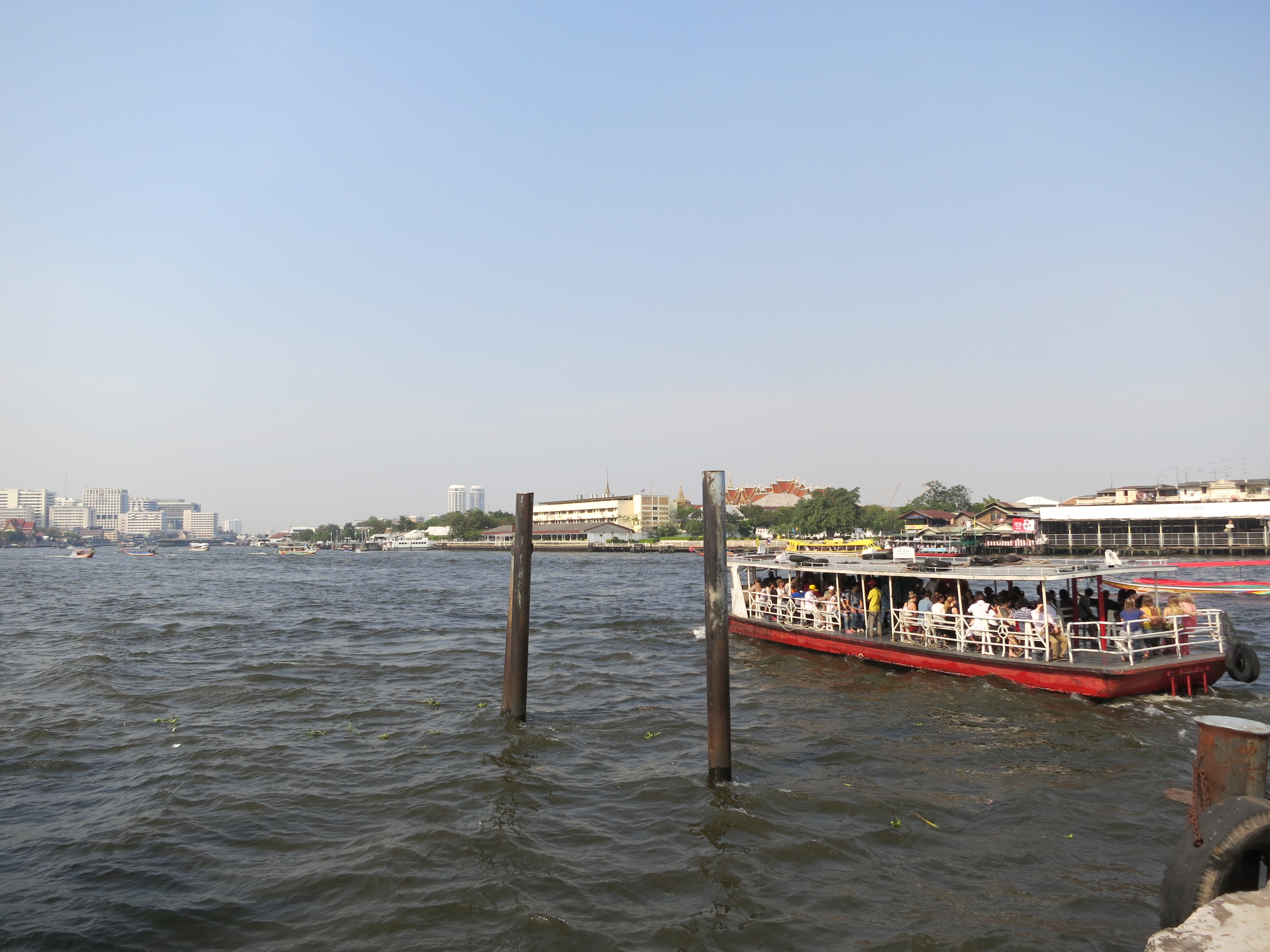 We continued our tour of the major temples in Bangkok by visiting Wat Pho and Wat Arun today. After sleeping in and having a quick swim in the hotel pool after breakfast, we packed up our overnight bags for Cambodia and packed everything else into our suitcases, which the hotel was holding for us until our return the following evening. We checked out of the hotel at noon, with our bags safely stored in the hotel bag area, then we hopped onto the sky train for the quick trip back to the Chao Phraya river and got on a ferry heading upriver. We didn’t get the full day pass, as we had yesterday, since we planned on getting to the airport for our flight to Siem Reap via cab or train from the downtown area.