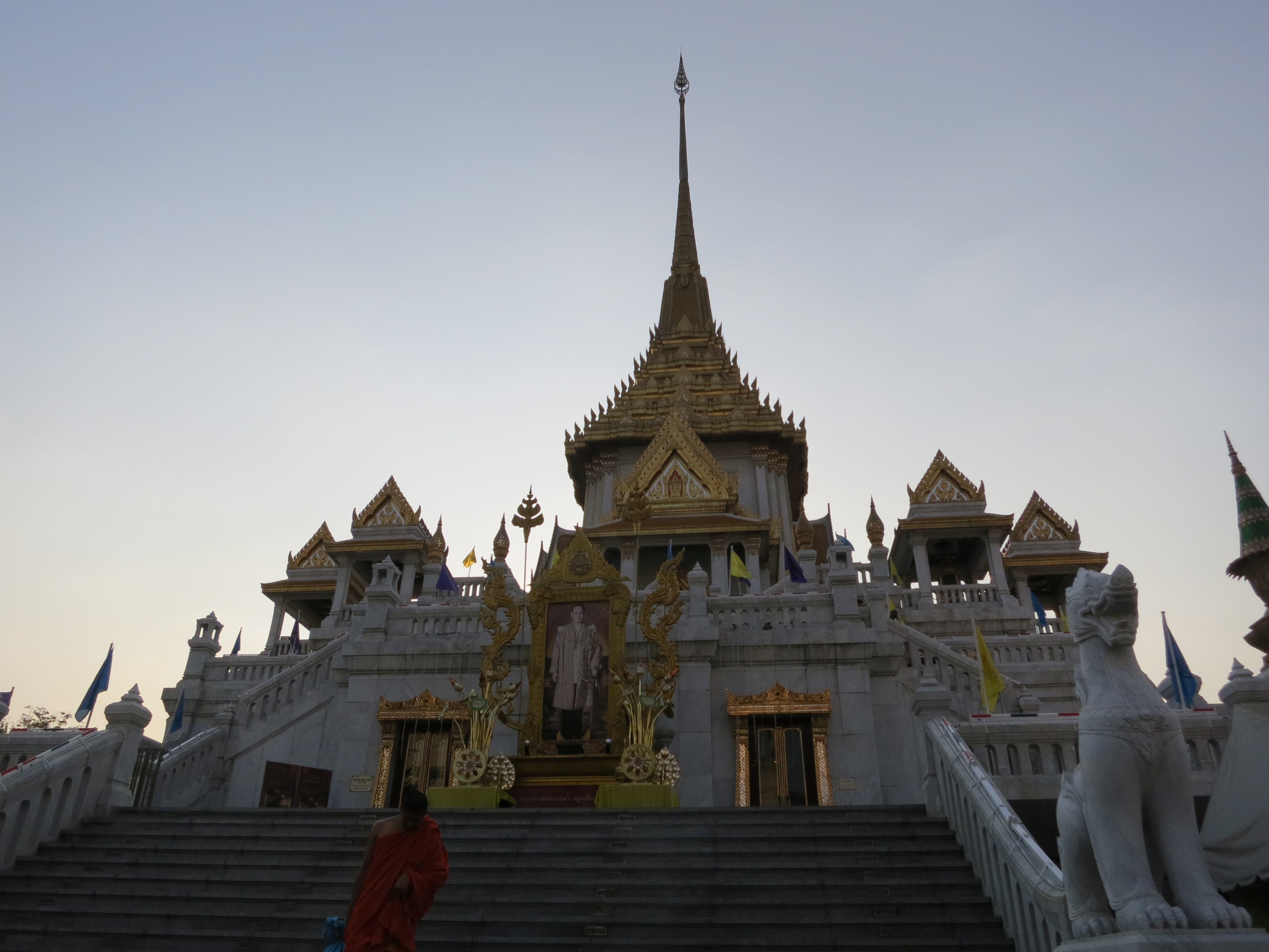 After descending from Wat Arun we crossed the river again using the same ferry which brought us over originally. We started walking towards Wat Traimit, a temple in downtown which holds the largest solid gold statue of Buddha in the world. Unfortunately, we got a bit lost on our walk, and by the time we arrived at the temple it was closed. Temples close fairly early in Bangkok, typically at 4:30 PM. By this point it was getting a bit late, and our flight to Siem Reap was scheduled to depart from the Don Mueang airport at 7:30 PM, so we started to make our way towards the airport. This was a bit tricky, as Don Mueang is a fair hike from the downtown core where we were.The front of Wat Traimit