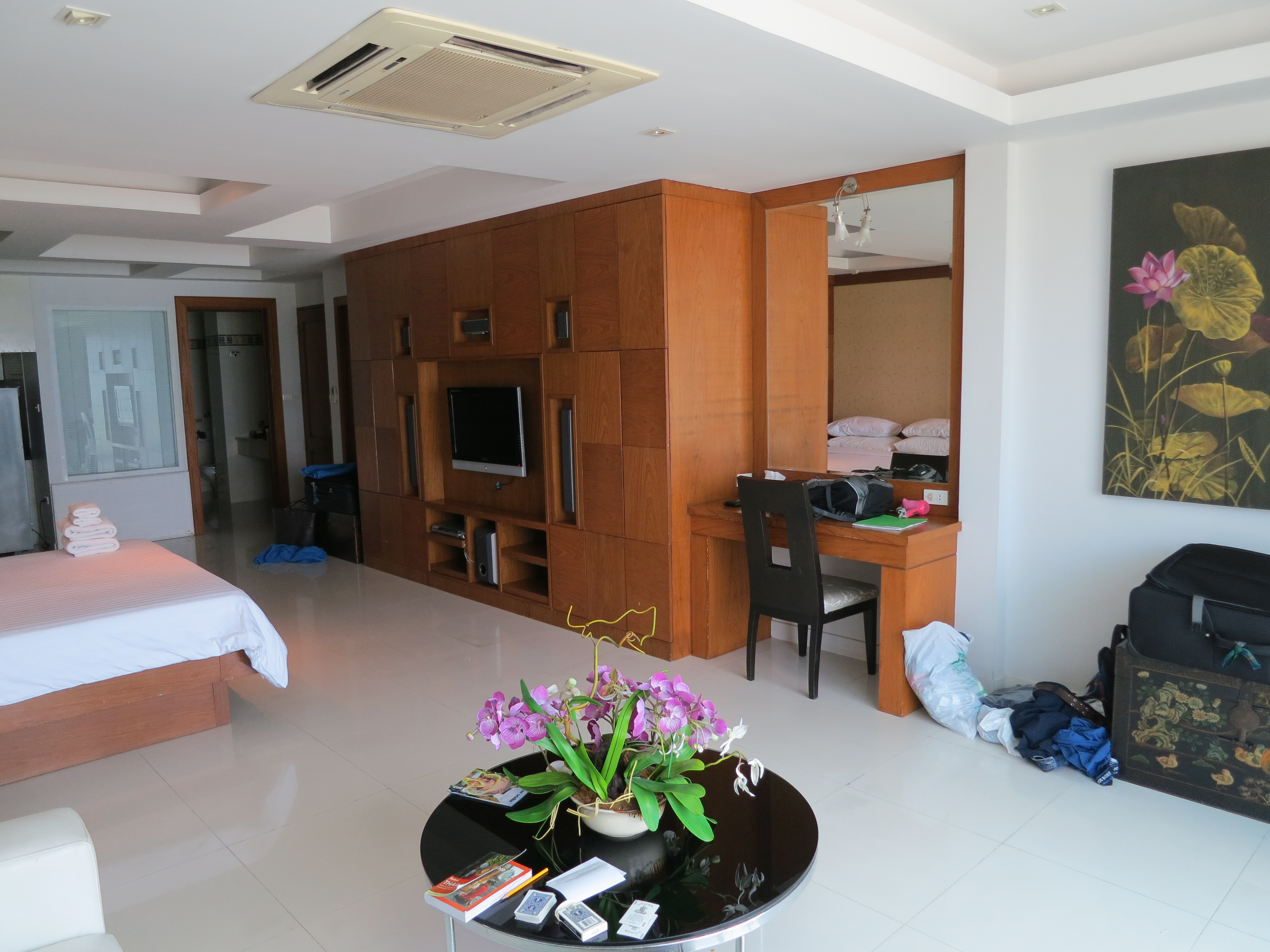 Finally, a bit of calm. The excitement of the last few days is over, and we had a bit less of an exiting day today. We spent the morning relaxing in the hotel and having a quick swim before packing up and taking a cab to Don Mueang for our flight down to Phuket. I think we’ve learned our lesson; we decided against taking another train! We will be spending the next few days at Patong Beach in the Phuket province in Thailand. The flight from DMK to HKT was uneventful, and we made it to our hotel with no issues. The drive from the airport to Patong Beach was longer than I expected; it took us over an hour.